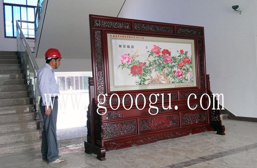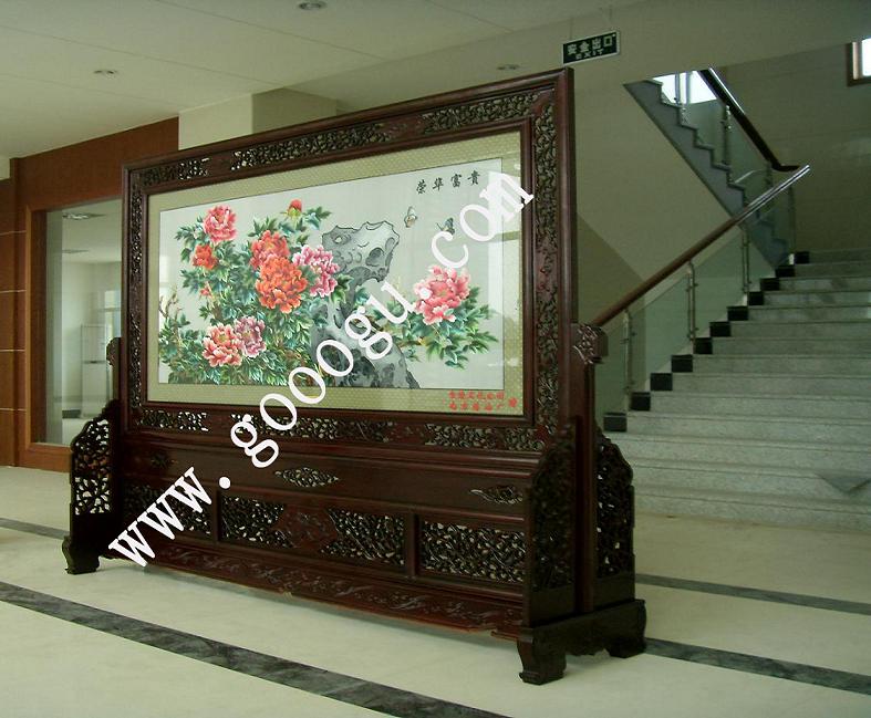 大型紅木屏風(fēng)定做&刺繡屏風(fēng)來(lái)樣定做加工*雙面繡大堂屏風(fēng)---山東某五星級(jí)酒店訂
