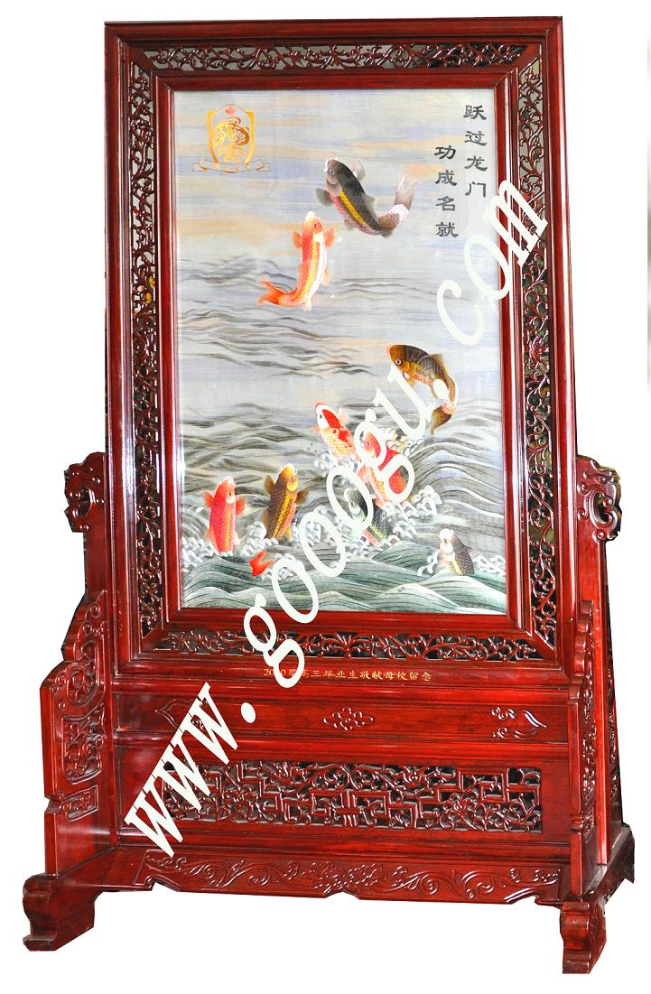 蘇繡小地屏 雙面刺繡小屏風(fēng)玄關(guān) 魚(yú)躍龍門(mén)圖 學(xué)校畢業(yè)紀(jì)念贈(zèng)品