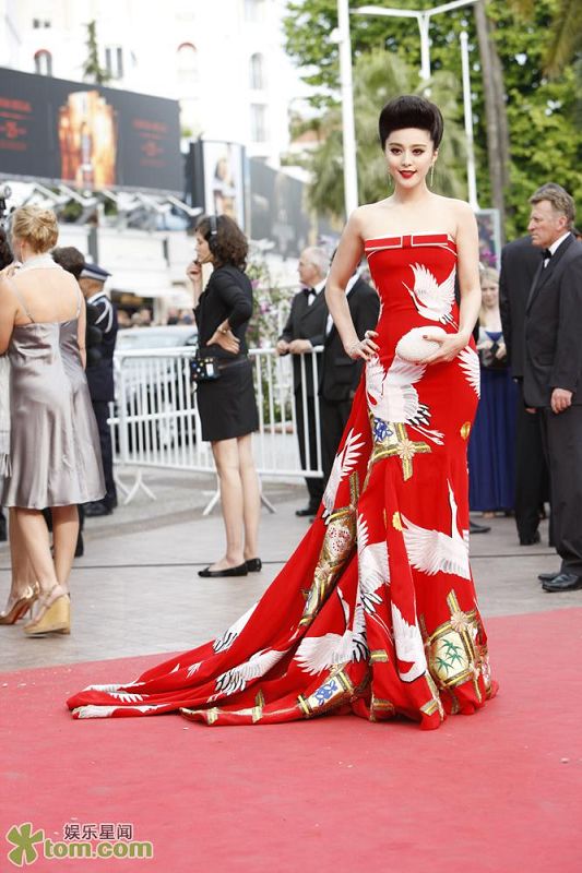 北京時(shí)間5月11日深夜,第64屆戛納國(guó)際電影節(jié)隆重開幕。今年的戛納紅毯明星云集,安東尼奧·班德拉斯、庫斯圖里卡、昆汀·塔倫蒂諾、費(fèi)·唐諾薇、瑞切爾·麥克亞當(dāng)斯、烏瑪·瑟曼等明星讓紅毯星光熠熠。中國(guó)明星出現(xiàn)的頻率也頗高。除了評(píng)委施南生和杜琪峰外,本屆戛納出現(xiàn)在開幕式紅毯上的中國(guó)女明星共有三位:鞏俐、范冰冰、袁莉。按照國(guó)際影響力大小,原本該是鞏俐排第一,但意外的是,今年戛納官方直播時(shí),卻選擇了把最多的鏡頭給予范冰冰。范冰冰當(dāng)天穿了一身紅色的仙鶴裝。仙鶴裝以中國(guó)紅為底色,上繡九只形態(tài)各異的仙鶴,中間還點(diǎn)綴著梅蘭竹菊。據(jù)范冰冰的宣傳總監(jiān)楊小姐介紹,選擇這件衣服是因?yàn)?span lang="EN-US">“海為龍世界,云是鶴家鄉(xiāng)”,這是繼去年的龍袍后,范冰冰再次選擇中國(guó)元素禮服來展現(xiàn)東方美。記者還了解到,其實(shí)除了這件仙鶴裝,范冰冰原本還有一套西式晚裝供選擇。在中規(guī)中矩的西式晚裝和中國(guó)風(fēng)情的仙鶴裝中,范冰冰一度擔(dān)心這套仙鶴裝過于夸張,但在最后決斷時(shí),她還是憑本能選擇了夸張的這套。