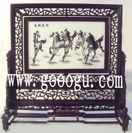 高檔紫檀雙面繡馬到成功