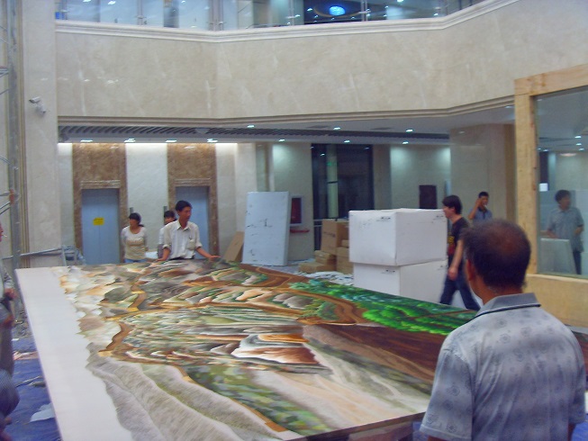 貴州盤(pán)江精煤股份有限公司是1999年經(jīng)貴州省人民政府批準(zhǔn),由盤(pán)江煤電集團(tuán)公司作為主發(fā)起人,聯(lián)合中煤進(jìn)出口公司、貴陽(yáng)特鋼公司、防城港務(wù)局等七家單位共同發(fā)起設(shè)立的股份制企業(yè),盤(pán)江股份于2001年5月在上交所正式掛牌交易。 公司是盤(pán)江礦區(qū)煤炭開(kāi)發(fā)主體。盤(pán)江礦區(qū)是我國(guó)十二五規(guī)劃建設(shè)的全國(guó)14個(gè)大型煤炭生產(chǎn)基地之一。礦區(qū)因與云南富源、宣威接壤,地處中國(guó)攀西六盤(pán)水這個(gè)資源富集金三角的最南端,又以豐富的煤炭資源稱冠江南,被譽(yù)為金三角下的一顆明珠。 2013年7月盤(pán)江股份集團(tuán)大樓新址即將完工,蘇州嬌古蘇繡負(fù)責(zé)承建新大樓一樓的刺繡隔斷工程,在時(shí)間有限的情況下,嬌古蘇繡負(fù)責(zé)人接到通知后緊鑼密鼓的安排各道工序,工藝師們都在加班加點(diǎn),在時(shí)間有限的情況下高效率的完成了任務(wù),6月底,嬌古蘇繡安排工作人員前往盤(pán)江股份集團(tuán)所在地貴州,為整體隔斷工程進(jìn)行裝裱并指導(dǎo)安裝。在經(jīng)過(guò)大家相互配合的情況下,隔斷的主體工程已經(jīng)安裝就位,盤(pán)江股份集團(tuán)公司的領(lǐng)導(dǎo)對(duì)嬌古蘇繡工作人員高效率的完成任務(wù)給予高度的評(píng)價(jià),對(duì)刺繡工程的整體效果也是非常滿意。