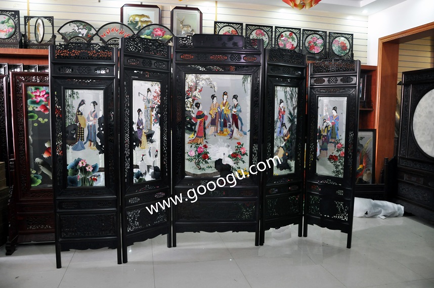 小說《紅樓夢》塑造了眾多栩栩如生的女性人物,其中又以林黛玉、薛寶釵為首的十二金釵最為人所稱道。近日嬌古蘇繡展示了一件與十二金釵題材有關(guān)的藏品雙面蘇繡屏風(fēng)紅樓夢十二金釵。 這面屏風(fēng)高230厘米,寬315厘米,共分5面,最大一面居中,內(nèi)有4位美女,余下4面稍小,內(nèi)各有2位美女。除人物外,屏風(fēng)內(nèi)還有孔雀、仙鶴、牡丹、翠竹、垂柳、蘭花、流水、石頭等中國畫傳統(tǒng)入畫景物。靈秀的人物與典雅的景物構(gòu)成一個(gè)渾然一體的富貴畫面,呈現(xiàn)了十二金釵的風(fēng)韻神貌和賈府的榮華場景。整件作品充分展現(xiàn)了蘇繡藝術(shù)五彩繽紛、絢麗耀目和精細(xì)、雅潔、秀美的風(fēng)格特點(diǎn)。據(jù)嬌古蘇繡介紹,這款紅樓夢的十二金釵屏風(fēng)是由8位中高級工藝師歷時(shí)半年完成,繡工質(zhì)量達(dá)到行業(yè)較高水平,選用桑蠶絲線和木質(zhì)邊框裝裱而成,這面屏風(fēng)其工藝之精湛、細(xì)節(jié)之生動,毫不亞于一幅傳統(tǒng)的工筆畫,是一件難得的藝術(shù)精品,是非常值得收藏的。
