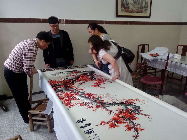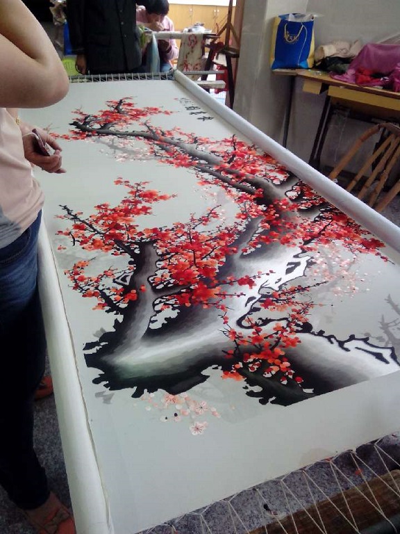 蘇州刺繡以其精細(xì)、傳神、精致著稱,近年來蘇繡也成為了裝飾類的新寵,不少蘇繡工藝品開始進(jìn)駐家裝、酒店、高級會所的市場,掀起了一股手工蘇繡熱,今年1月份湖北省人民政府工作人員來到蘇州嬌古蘇繡,在湖北省的洪山禮堂需要做一件手工蘇繡,嬌古蘇繡的領(lǐng)導(dǎo)非常重視,經(jīng)過政府領(lǐng)導(dǎo)的研究決定,選用梅花報(bào)春圖為題材做一副傳統(tǒng)的蘇繡屏風(fēng)。 .jpg)