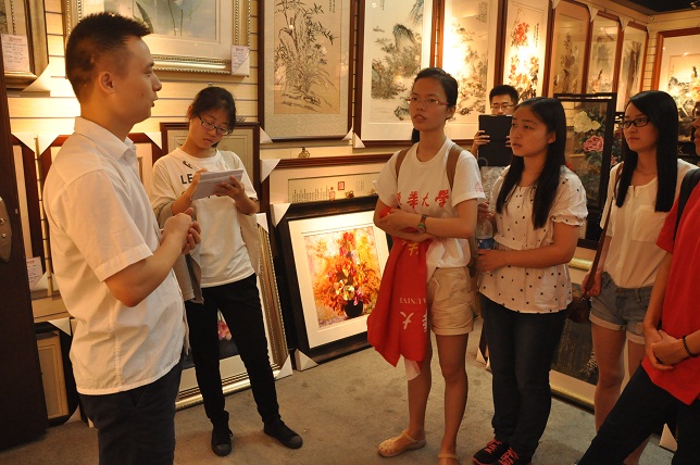 將中國傳統(tǒng)文化的藝術(shù)和高端學(xué)術(shù)相結(jié)合是時代發(fā)展的趨勢,用高科技的文化來充實民族工藝的發(fā)展,今天上午作為中國紡織業(yè)的高等學(xué)府東華大學(xué)的紡織學(xué)院及紡織科技協(xié)會走進蘇州嬌古蘇繡,嬌古蘇繡總經(jīng)理張奇?zhèn)ハ壬哟饲皝韰⒂^的一行人員,并向同學(xué)們講解了蘇繡的制作過程和蘇繡工藝。在交流參觀過程中,同學(xué)們不時的提出問題,張總都是一一為其解答,最后張總希望同學(xué)們努力學(xué)習(xí),將先進的技術(shù)應(yīng)用到我們的民族文化當(dāng)中,為弘揚文化藝術(shù)作出貢獻。