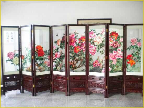嬌古蘇繡雙面繡 牡丹圖折疊屏風(fēng) 大廳家居玄關(guān)隔斷 純手工刺繡