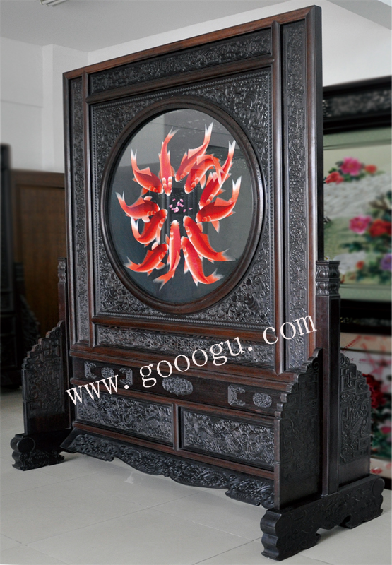 嬌古蘇繡木質(zhì)屏風(fēng) 玄關(guān)雙面繡 簡易大方 十二紅魚圖特色中國風(fēng)