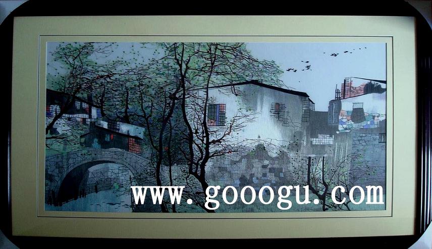 水鄉(xiāng)風(fēng)情刺繡|建筑刺繡畫|黑白裝飾畫