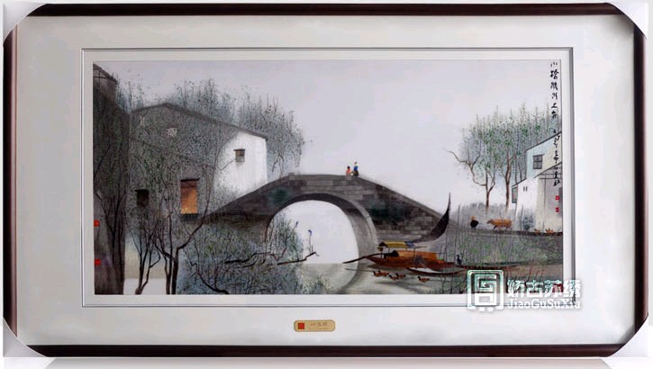 【蘇繡裝飾畫】水鄉(xiāng)裝飾畫、江南水鄉(xiāng)、小橋流水/酒店裝飾畫