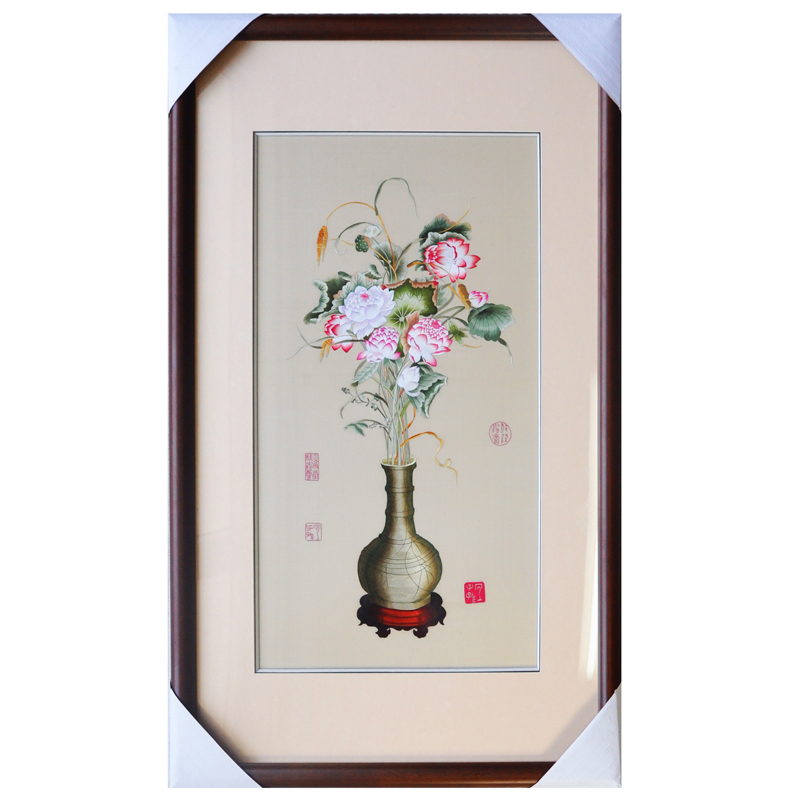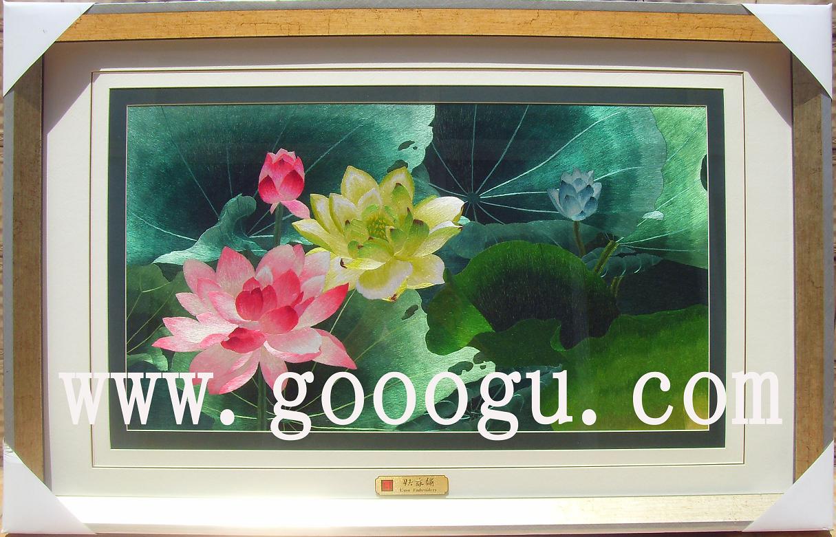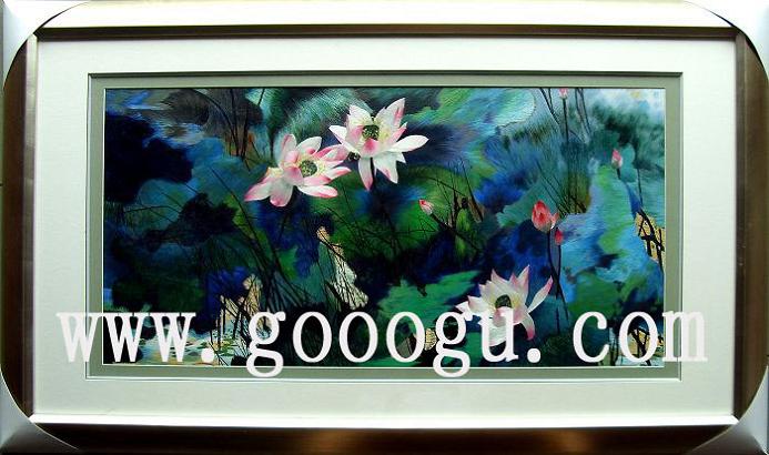 荷花蘇繡畫|手工刺繡藝術畫|客廳裝飾畫