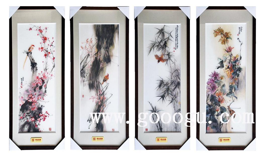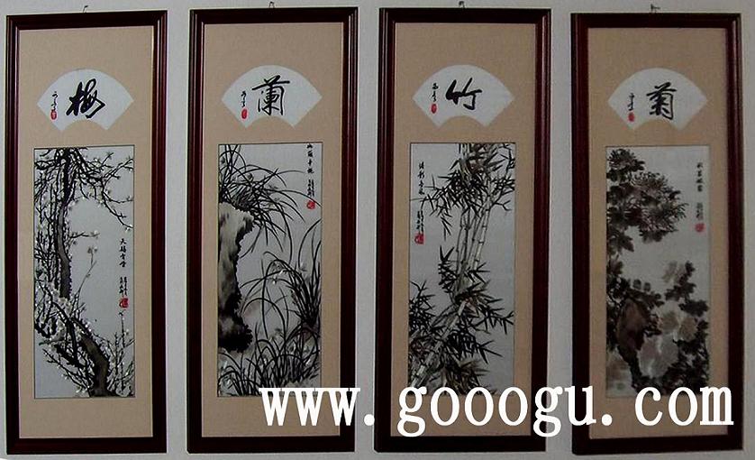 梅蘭竹菊刺繡裝飾畫(huà)|蘇州刺繡畫(huà)|手工刺繡工藝品