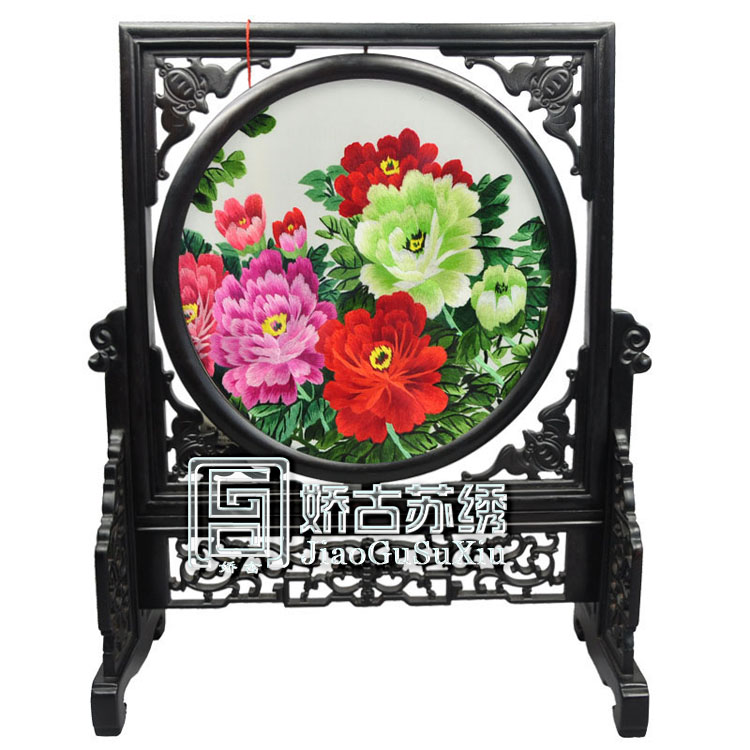 內圓外方雙面繡臺屏中國手工藝品送外賓精美特色好禮物