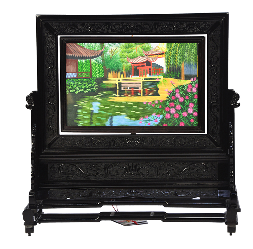 蘇繡工藝品刺繡雙面繡擺件禮品紅木家裝擺設(shè)飾品