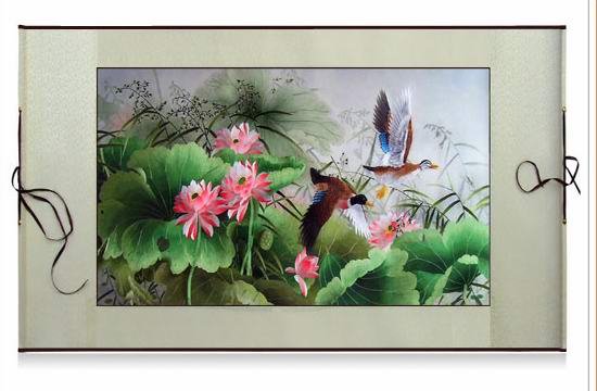 【嬌古蘇繡】蘇繡軟裱掛畫、雁弄荷花圖、裝飾精品畫/送領(lǐng)導(dǎo)