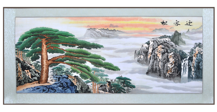 嬌古蘇繡民族特色禮品 迎客松 送外賓禮物蘇繡軟裱 方便攜帶出國(guó)