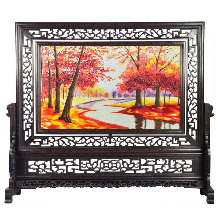 風(fēng)景刺繡畫紅色楓林成品手工刺繡成品特色蘇繡送外國人禮品
