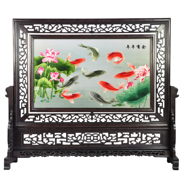 蘇繡年年有余手工雙面繡刺繡桌屏江蘇特色工藝品手工藝品