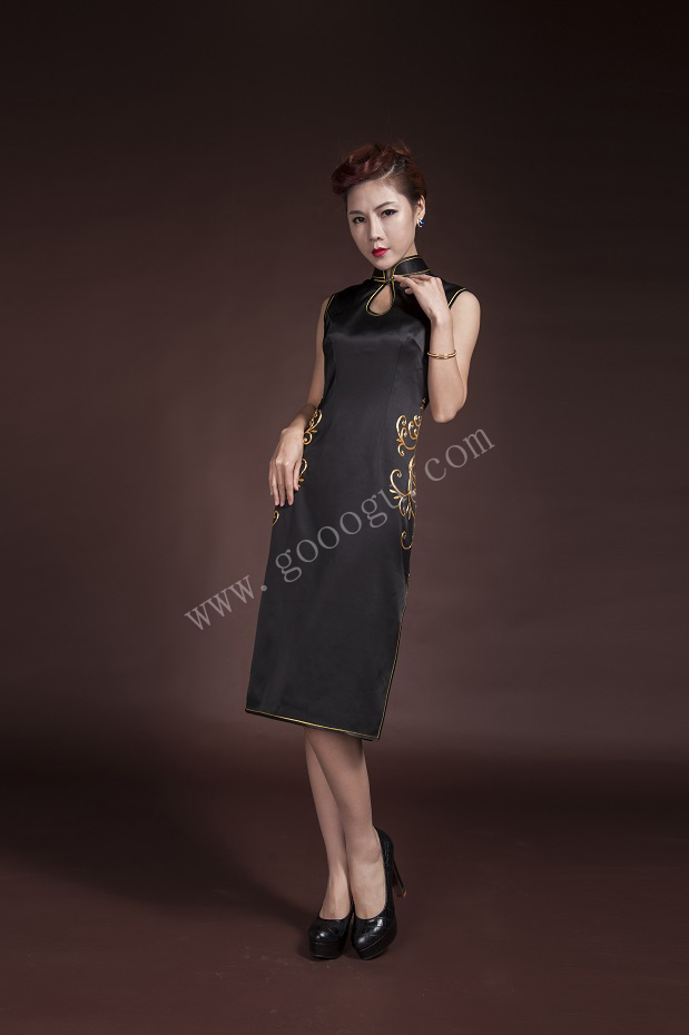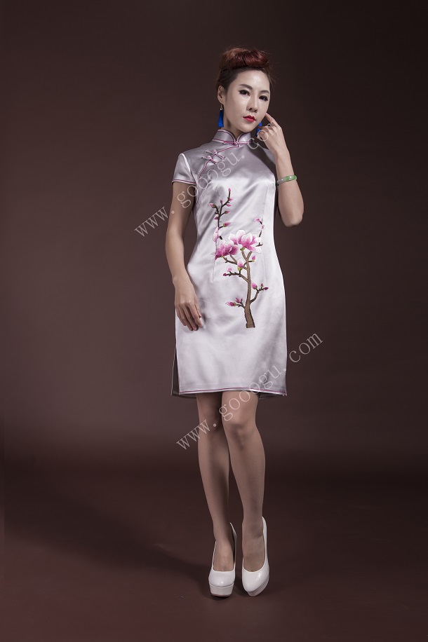 嬌古絲綢純手工刺繡禮服旗袍、流行服裝舞會(huì)聚會(huì)專(zhuān)用服飾