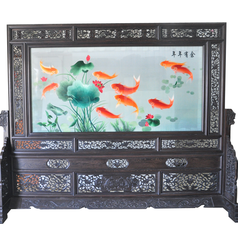 蘇繡蓮花魚屏風 純手工工藝品 大廳會所入口隔斷 紅魚精品刺繡