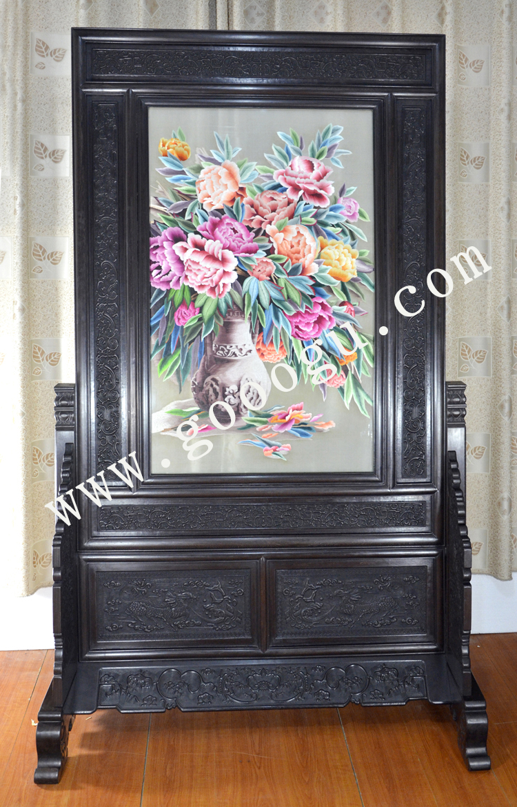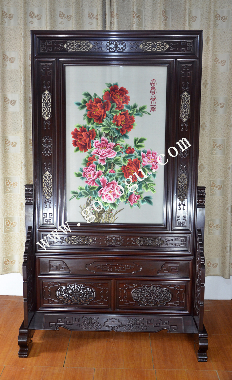 蘇繡玄關(guān)屏風(fēng) 木質(zhì)家用玄關(guān) 牡丹精品屏風(fēng) 純手工刺繡 包郵