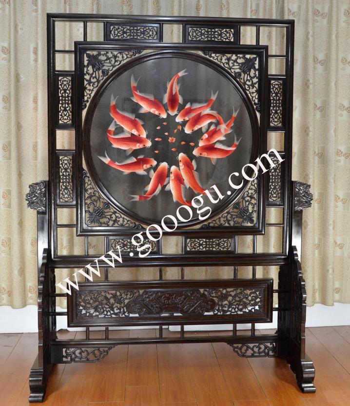 蘇繡屏風(fēng) 雙面繡 高檔繡工 十二紅魚 雞翅木