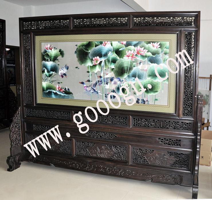大型中式裝飾畫屏風(fēng)&蘇州特色屏風(fēng)*荷花題材&高檔大堂刺繡擺件