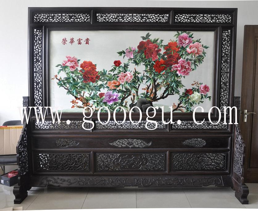 大廳裝飾刺繡擺件&紅木家具擺件&古典屏風(fēng)隔斷&孔雀牡丹蘇繡屏風(fēng)