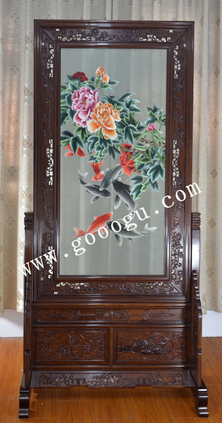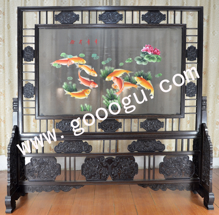 蘇繡屏風(fēng) 簡(jiǎn)易框架 雙面繡 年年有余 雞翅木 家用隔斷