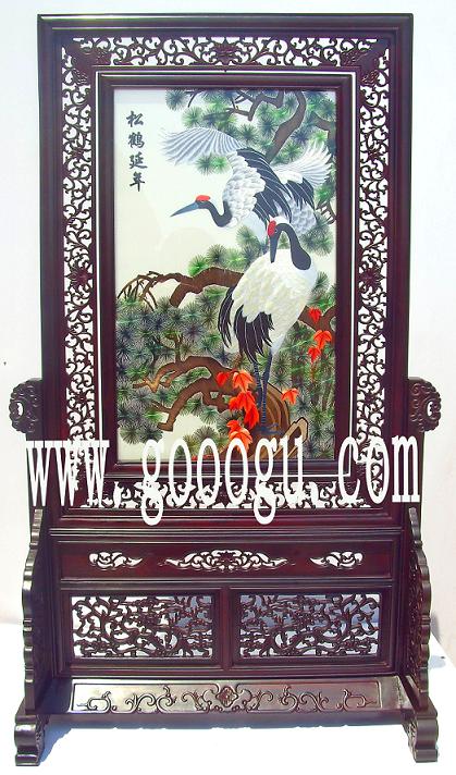 作品名稱:仙鶴檀木雙面繡插屏(作品代碼:ST-0886) 作品規(guī)格: 繡片尺寸30X50CM 框架整體尺寸,寬58CM,高97CM 作品工藝:蘇州工藝師手工刺繡,繡品可360度旋轉 作品材質:紫檀木,玻璃夾住繡品 作品包裝:錦盒禮品裝 作品出廠參考價:7800元 作品描述:此款飛鶴檀木蘇繡雙面繡插屏,選材考究,作工精良,全部工藝為當代頂級工藝師所作??蚣艿窨?,打磨,等所有工藝均為手工自然合成,刺繡圖案繡工精細平整光亮,飛鶴針腳精短細密,從外觀或藝術欣賞角度審美。是贈送領導或長輩的貴重禮品之一。 一件作品,一個時代,一份心情,一生珍藏!嬌古蘇繡值的珍藏! |
