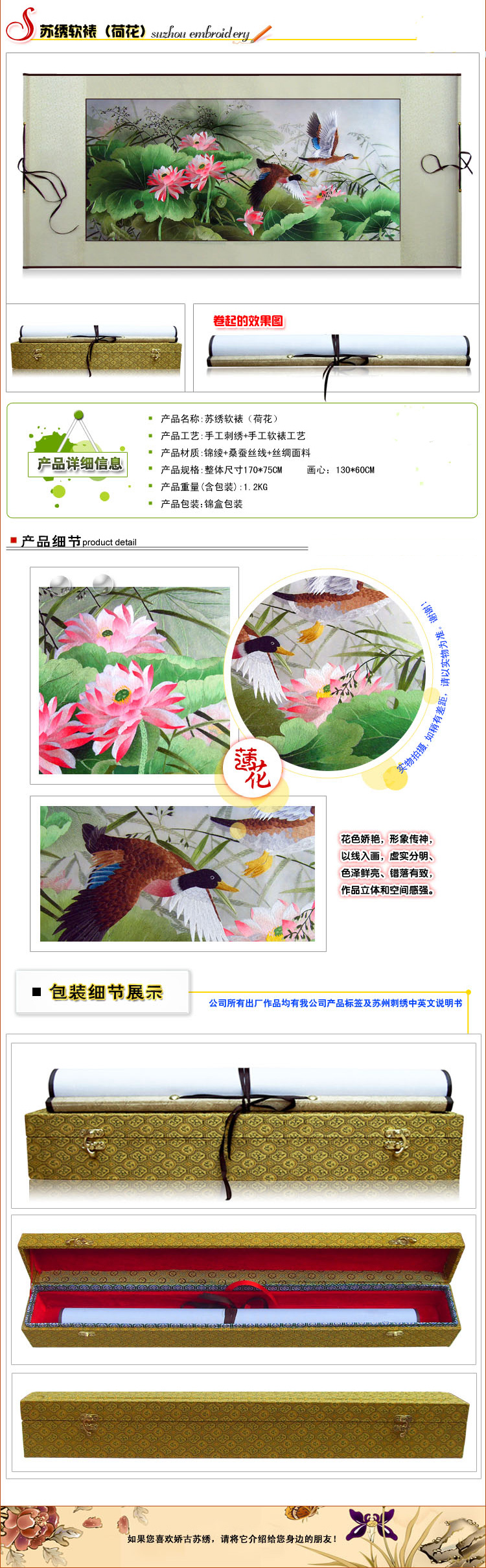 【嬌古蘇繡】蘇繡軟裱掛畫、雁弄荷花圖、裝飾精品畫/送領(lǐng)導(dǎo)
