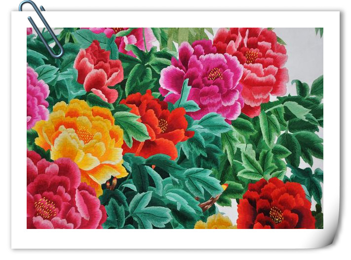 【蘇繡名稱】:牡丹富貴圖裝飾壁畫 【蘇繡規(guī)格】:60*160(圖案尺寸) 85*200CM(外框尺寸) 【蘇繡工藝】:手工刺繡 【外框材質(zhì)】:實木框拉丁木 【絲線材質(zhì)】:蠶絲線 【蘇繡檔次】:6-8絲刺繡。 【嬌古蘇繡出廠價】:5500元(含運費) 【發(fā)貨方式】:由我司安排發(fā)往客人指定地點 【作品介紹】:牡丹,一直是中國傳統(tǒng)工筆花鳥畫中的經(jīng)典題材。這幅嬌古蘇繡的工筆畫《富貴圖》,整個畫面顏色濃郁,針線流暢自然;畫中花紅葉綠的巧妙搭配盡顯牡丹的國色天香,具有詩意,是一幅非常具有中國傳統(tǒng)文化特色精品工筆畫作。這幅畫從不同的角度表現(xiàn)出牡丹的高貴與典雅,盡顯工筆畫的神韻之美。 【細節(jié)欣賞】 .jpg)