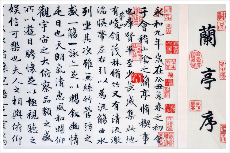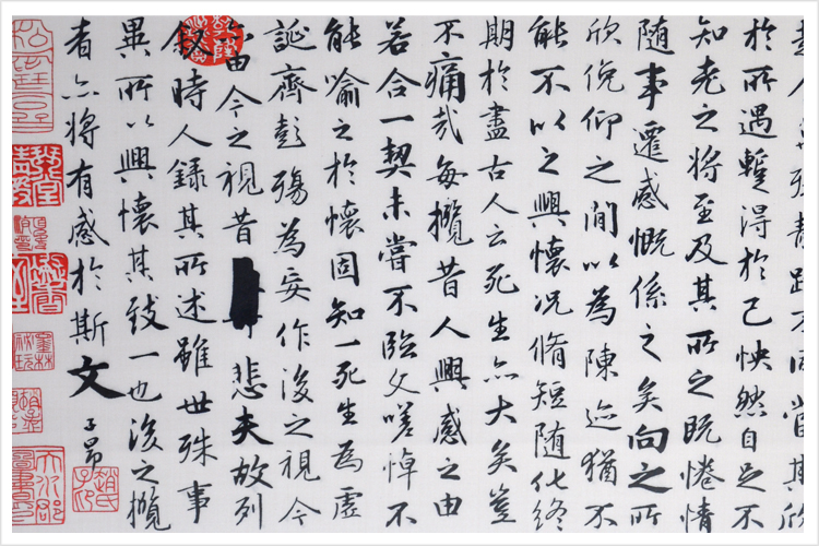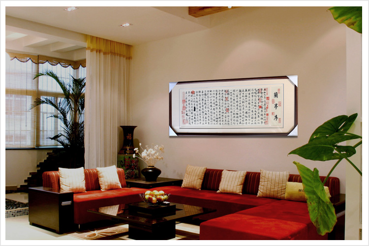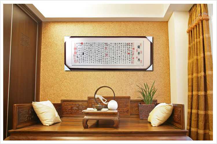 【品 牌】:嬌古 (作品代碼 D-1042) 【品 名】:蘭亭序裝飾畫(手工蘇繡) 【品 質(zhì)】:2-4絲刺繡 (蘇繡小知識(shí):1根蘇繡絲線可分為16絲,中檔刺繡皆為10絲所繡,中高檔刺繡皆為6-8絲,高檔刺繡皆為4-6絲,精品刺繡皆為1-4絲) 【尺 寸】:畫心尺寸44*117cm 整體尺寸60*147cm 【產(chǎn)品工藝】:手工刺繡+真絲底料 【絲線材質(zhì)】:蠶絲線 【用 途】:家居裝飾及政府禮品、外賓禮品、生日禮物、賀壽禮品、領(lǐng)導(dǎo)升遷、出國禮品等等。 【出廠價(jià)格】:12000元 【作品介紹】:東晉穆帝(司馬聃)永和九年(公元353年)三月初三日,王羲之和當(dāng)時(shí)名士孫綽、謝安和釋支遁等四十一人,為禊事活動(dòng),在蘭亭宴集。與會(huì)的人士都有詩作,事后把這些詩篇匯編成集,《蘭亭集序》就是王羲之為這個(gè)詩集所寫的序言。序,文體名,是對(duì)書籍和文章舉其綱要、論其大旨的一種文字,相當(dāng)于引言。 《蘭亭集序》文字燦爛,字字珠璣,是一篇膾炙人口的優(yōu)美散文,它打破成規(guī),自辟徑蹊,不落窠臼,雋妙雅逸,不論繪景抒情,還是評(píng)史述志,都令人耳目一新。雖然前后心態(tài)矛盾,但總體看,還是積極向上的,特別是在當(dāng)時(shí)談玄成風(fēng)的東晉時(shí)代氣氛中,提出一死生為虛誕,齊彭殤為妄作,尤為可貴?!短m亭集序[1]》的更大成就在于它的書法藝術(shù)。通篇?dú)庀⒌涂侦`、瀟灑自然;用筆遒媚飄逸;手法既平和又奇崛,大小參差 ,既有精心安排藝術(shù)匠心,又沒有做作雕琢的痕跡,自然天成。其中,凡是相同的字, 寫法各不相同,各有變化,特別是字,達(dá)到了藝術(shù)上多樣與統(tǒng)一的效果?!短m亭集序》是王羲之書法藝術(shù)的代表作,是中國書法藝術(shù) 史上的一座高峰,它滋養(yǎng)了一代又一代書法家。 在結(jié)構(gòu)和章法上以情感為線索,敘中有情,以情說理。第一段在清麗的境界中,著重寫樂字,由樂而轉(zhuǎn)入沉思,引出第二段的痛字,在經(jīng)過一番痛苦的思考后,不覺感到無限的悲哀,最后以一悲字作結(jié)。情感色彩迥乎不同,前后過渡卻妥帖自然。 細(xì)節(jié)圖