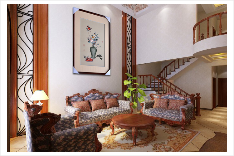 【品 牌】:嬌古 (作品代碼 D-1034) 【品 名】:郎世寧《午瑞圖》裝飾畫(手工蘇繡) 【品 質】:1-2絲刺繡 (蘇繡小知識:1根蘇繡絲線可分為16絲,中檔刺繡皆為10絲所繡,中高檔刺繡皆為6-8絲,高檔刺繡皆為4-6絲,精品刺繡皆為1-4絲) 【尺 寸】:畫心尺寸50*80cm 整體尺寸75*110cm 【產品工藝】:手工刺繡+真絲底料 【絲線材質】:蠶絲線 【用 途】:居家裝飾及政府禮品、外賓禮品、生日禮物、賀壽禮品、領導升遷、出國禮品等等。 【出廠價格】:7500元 【細節(jié)圖欣賞】 .jpg)