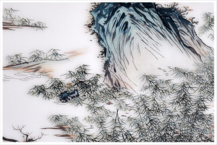 【品 牌】:嬌古 (作品代碼 D-1028) 【品 名】:南岸山水裝飾畫(手工蘇繡) 【品 質(zhì)】:1-2絲刺繡 (蘇繡小知識:1根蘇繡絲線可分為16絲,中檔刺繡皆為10絲所繡,中高檔刺繡皆為6-8絲,高檔刺繡皆為4-6絲,精品刺繡皆為1-4絲) 【尺 寸】:畫心尺寸50*100cm 整體尺寸75*130cm 【產(chǎn)品工藝】:手工刺繡 【絲線材質(zhì)】:蠶絲線 。 【用 途】:居家裝飾或送政府禮品、外賓禮品、生日禮物、賀壽禮品、領導升遷、出國禮品等等。 【出廠價格】:15000元 【細節(jié)圖】