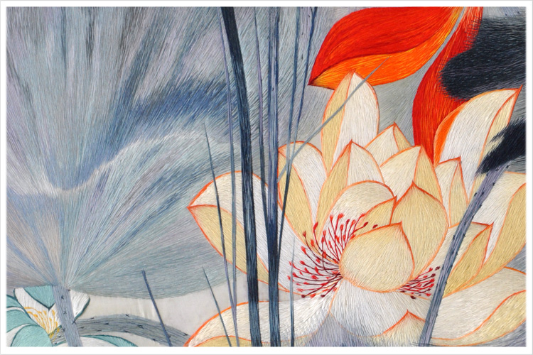 【品 牌】:嬌古 (作品代碼 D-1023) 【品 名】:張大千水墨裝飾畫(手工蘇繡) 【品 質(zhì)】:1-2絲刺繡 (蘇繡小知識(shí):1根蘇繡絲線可分為16絲,中檔刺繡皆為10絲所繡,中高檔刺繡皆為6-8絲,高檔刺繡皆為4-6絲,精品刺繡皆為1-4絲) 【尺 寸】:畫心尺寸60*120cm 整體尺寸95*170cm 【產(chǎn)品工藝】:手工刺繡 【絲線材質(zhì)】:蠶絲線 【用 途】:政府禮品、外賓禮品、生日禮物、賀壽禮品、領(lǐng)導(dǎo)升遷、出國禮品等等。 【出廠價(jià)格】:48000元 【細(xì)節(jié)圖】