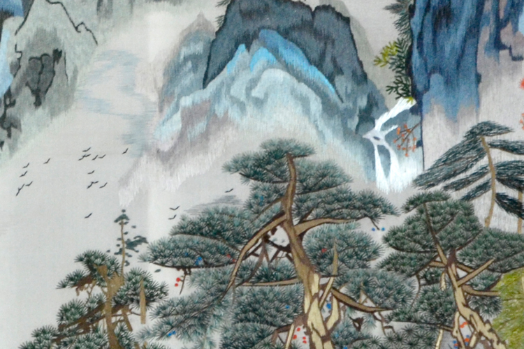 【產(chǎn)品名稱】:屏風江山如此多嬌 (作品代碼:P-1089) 【產(chǎn)品規(guī)格】:圖案尺寸寬度120cm,高度70cm 外框整體尺寸寬180cm,高180cm 【產(chǎn)品工藝】:手工刺繡 【產(chǎn)品材質(zhì)】:真絲面料+雞翅木框+桑蠶絲線+玻璃 【產(chǎn)品包裝】:木箱包裝,用海綿包扎,確保運輸安全 【出廠價】:22000元 【產(chǎn)品運輸】:我司負責發(fā)往客戶指定地點,蘇州附近城市可送貨上門! 【產(chǎn)品說明】:此款雙面繡屏風,是由蘇州工藝師耗時數(shù)個月精心手工刺繡而成,刺繡圖案以國畫江山如此多嬌為題材繡工精細,顏色搭配均勻過渡自然,整體給人舒適,愜意之感,屏風的框架選用雞翅木為料,蘇繡屏風是家用玄關或辦公玄關的重要裝飾物之一!歡迎親臨嬌古蘇繡展示廳觀看實物! 【作品欣賞】 .jpg)