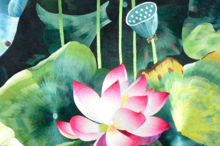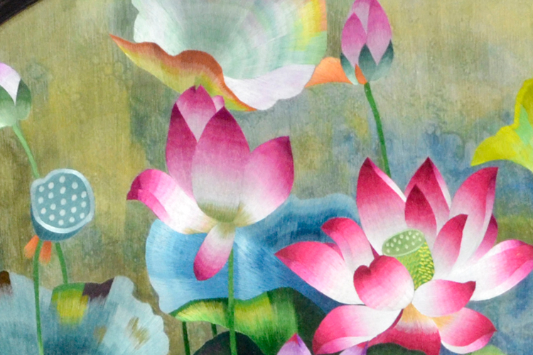 【產(chǎn)品名稱】:滿繡荷花屏風 (作品代碼:P-1098) 【產(chǎn)品規(guī)格】:圖案尺寸為100cm直徑的圓 外框整體尺寸寬160cm,高210cm 【產(chǎn)品工藝】:手工刺繡 【產(chǎn)品材質(zhì)】:真絲面料+雞翅木框+桑蠶絲線+玻璃 【產(chǎn)品包裝】:木箱包裝,用海綿包扎,確保運輸安全 【出廠價】:36800元 【產(chǎn)品運輸】:我司負責發(fā)往客戶指定地點,蘇州附近城市可送貨上門! 【產(chǎn)品說明】:此款雙面繡屏風,是由蘇州工藝師耗時三個月精心手工刺繡而成,刺繡圖案以荷花為題材繡工精細,顏色搭配均勻過渡自然,整體給人舒適,愜意之感,屏風的框架選用雞翅木為料,是蘇繡屏風中的經(jīng)典作品。是家用玄關(guān)或辦公室玄關(guān)的雅致禮品!歡迎親臨嬌古蘇繡展示廳觀看實物! 【作品欣賞】 .jpg)