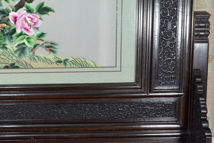 【產(chǎn)品名稱】:蘇繡屏風(fēng)國(guó)色天香(雙面繡) (作品代碼:P-1104) 【產(chǎn)品規(guī)格】:圖案尺寸寬度70cm,高度110cm 外框整體尺寸寬145cm,高220cm 【產(chǎn)品工藝】:手工刺繡 【產(chǎn)品材質(zhì)】:真絲面料+雞翅木框+桑蠶絲線+玻璃 【產(chǎn)品包裝】:木箱包裝,用海綿包扎,確保運(yùn)輸安全 【出廠價(jià)】:22000元 【產(chǎn)品運(yùn)輸】:我司負(fù)責(zé)發(fā)往客戶指定地點(diǎn),蘇州附近城市可送貨上門! 【產(chǎn)品說明】:此款雙面繡屏風(fēng),是由蘇州工藝師耗時(shí)三個(gè)月精心手工刺繡而成,刺繡圖案以牡丹花為題材繡工精細(xì),顏色搭配均勻過渡自然,屏風(fēng)的框架選用進(jìn)口的雞翅木為料,是蘇繡屏風(fēng)中的經(jīng)典作品。是企事業(yè)大堂或大廳的重要裝飾品之一!歡迎親臨嬌古蘇繡展示廳觀看實(shí)物! 【細(xì)節(jié)欣賞】 .jpg)