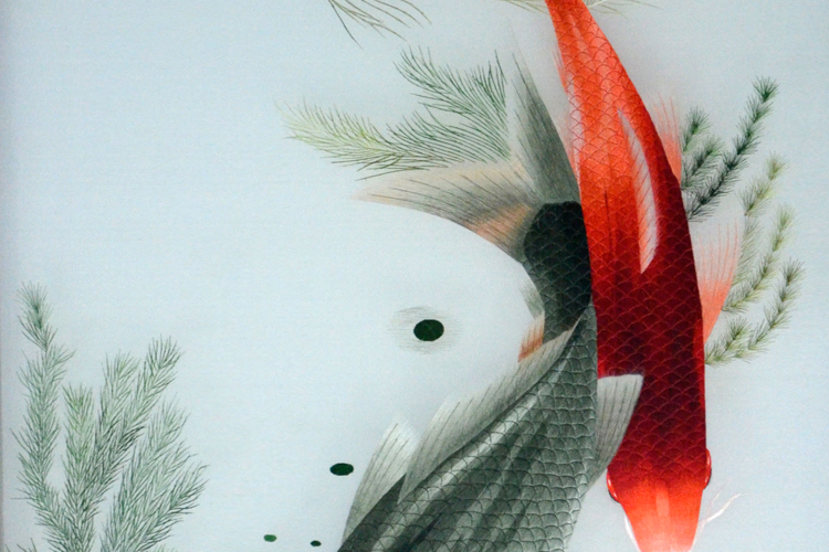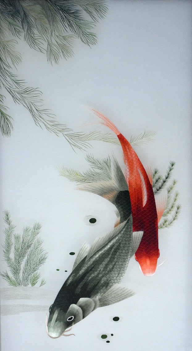 【產(chǎn)品名稱】:蘇繡水草魚屏風(fēng)(雙面繡) (作品代碼:P-1201) 【產(chǎn)品規(guī)格】:圖案尺寸寬度60cm,高度125cm 外框整體尺寸寬100cm,高205cm 【產(chǎn)品工藝】:手工刺繡 【產(chǎn)品材質(zhì)】:真絲面料+雞翅木框+桑蠶絲線+玻璃 【產(chǎn)品包裝】:木箱包裝,用海綿包扎,確保運(yùn)輸安全 【出廠價(jià)】:16000元 【市場(chǎng)零售參考價(jià)】:32000-42000元 【產(chǎn)品運(yùn)輸】:我司負(fù)責(zé)發(fā)往客戶指定地點(diǎn),蘇州附近城市可送貨上門! 【產(chǎn)品說(shuō)明】:此款水草魚雙面繡屏風(fēng),是由蘇州工藝師耗時(shí)數(shù)個(gè)月精心手工刺繡而成,刺繡圖案以中國(guó)傳統(tǒng)的魚為題材繡工精細(xì),寓意深刻,符合國(guó)人對(duì)傳統(tǒng)文化的保護(hù)和對(duì)未來(lái)社會(huì)的美好向往,整幅作品顏色搭配均勻過(guò)渡自然,屏風(fēng)的框架選用進(jìn)口的雞翅木為料,是蘇繡屏風(fēng)中的珍稀作品。是居家和辦公的重要裝飾品之一!歡迎親臨嬌古蘇繡展示廳觀看實(shí)物! 【作品欣賞】 .jpg)