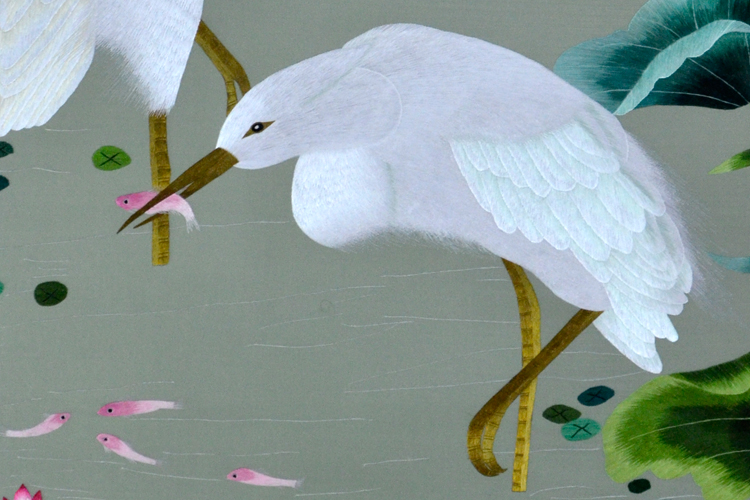【產(chǎn)品名稱】:白鷺雙棲玄關(guān)(雙面繡) (作品代碼:P-1211) 【產(chǎn)品規(guī)格】:圖案尺寸寬度70cm,高度110cm 外框整體尺寸寬86cm,高168cm 【產(chǎn)品工藝】:手工刺繡 【產(chǎn)品材質(zhì)】:真絲面料+雞翅木框+桑蠶絲線+玻璃 【產(chǎn)品包裝】:木箱包裝,用海綿包扎,確保運輸安全 【出廠價】:12000元 【產(chǎn)品運輸】:我司負責(zé)發(fā)往客戶指定地點,蘇州附近城市可送貨上門! 【產(chǎn)品說明】:此款白鷺雙棲玄關(guān)雙面繡,是由蘇州工藝師耗時兩個月精心手工刺繡而成,顏色搭配均勻過渡自然,屏風(fēng)的框架選用雞翅木為料,此款蘇繡屏風(fēng)適合居家和辦公裝飾!歡迎親臨嬌古蘇繡展示廳觀看實物! 【作品欣賞】 .jpg)