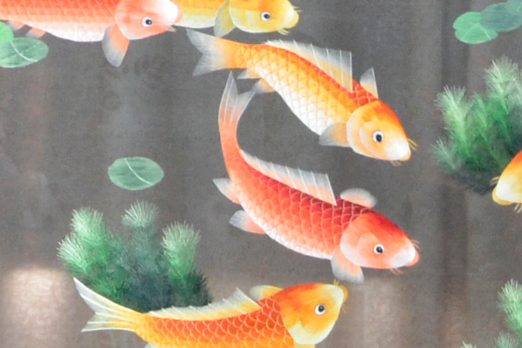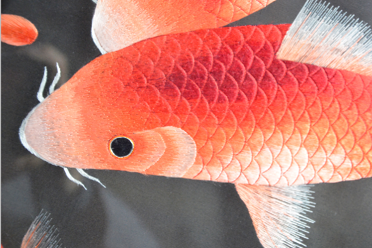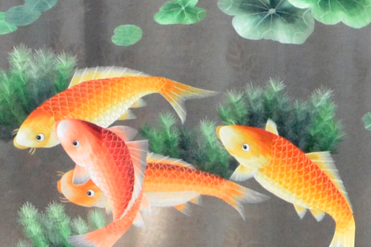 【產(chǎn)品名稱】:年年有余屏風(fēng)(雙面繡) (作品代碼:P-1212) 【產(chǎn)品規(guī)格】:圖案尺寸寬度140cm,高度85cm 外框整體尺寸寬188cm,高186cm 【產(chǎn)品工藝】:手工刺繡 【產(chǎn)品材質(zhì)】:真絲面料+雞翅木框+桑蠶絲線+玻璃 【產(chǎn)品包裝】:木箱包裝,用海綿包扎,確保運(yùn)輸安全 【出廠價】:18000元 【產(chǎn)品運(yùn)輸】:我司負(fù)責(zé)發(fā)往客戶指定地點(diǎn),蘇州附近城市可送貨上門! 【產(chǎn)品說明】:此款年年有余雙面繡屏風(fēng),是由蘇州工藝師耗時兩個月精心手工刺繡而成,刺繡圖案以水草荷花魚為題材繡工精細(xì),給人清新愜意之感,顏色搭配均勻過渡自然,屏風(fēng)的框架選用雞翅木為料,此款蘇繡屏風(fēng)中適合居家和辦公的裝飾!歡迎親臨嬌古蘇繡展示廳觀看實物! 【作品欣賞】 .jpg)