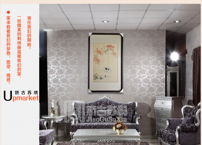 【品 牌】:嬌古 (作品代碼 D-1071)【品 名】:荷塘秋韻裝飾畫【尺 寸】:畫心尺寸50*80cm 整體尺寸70*120cm【產(chǎn)品工藝】:手工刺繡【絲線材質(zhì)】:蠶絲線 【用 途】:政府禮品、個人收藏、外賓禮品、生日禮物、賀壽禮品、領(lǐng)導(dǎo)升遷、出國禮品等等。【出廠價格】:5800元/件