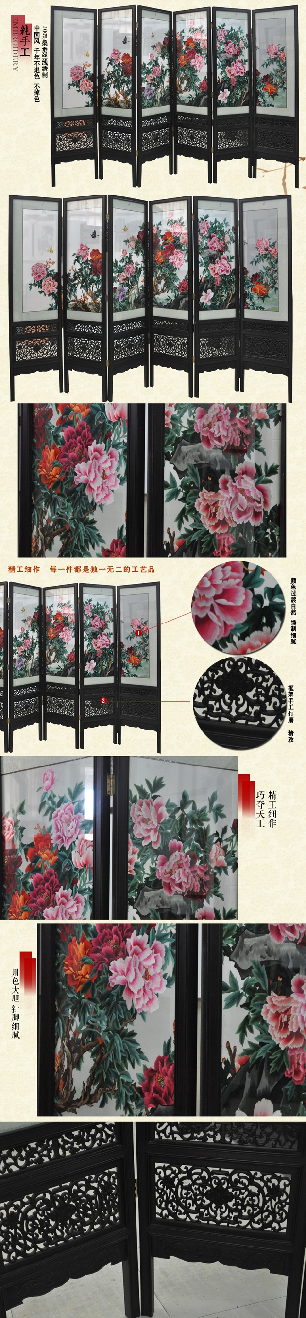 【產(chǎn)品名稱】:國色牡丹(雙面繡) (作品代碼:zp-1528) 【產(chǎn)品規(guī)格】:圖案尺寸寬度100cm/扇,高度43cm/扇 外框整體尺寸寬198cm/扇,高51cm/扇 【產(chǎn)品工藝】:手工刺繡 【產(chǎn)品材質(zhì)】:真絲面料+雞翅木+桑蠶絲線+玻璃 【產(chǎn)品包裝】:木箱包裝,用海綿包扎,確保運輸安全 【出廠價】:44800元 【產(chǎn)品運輸】:我司負責發(fā)往客戶指定地點,蘇州附近城市可送貨上門! 【產(chǎn)品說明】:國色牡丹雙面繡屏風,是由蘇州工藝師耗時數(shù)個月精心手工刺繡而成,刺繡圖案以國花牡丹為題材繡工精細,簡約大方,顏色搭配均勻過渡自然,屏風的框架選用進口的雞翅木為料,是蘇繡屏風中的經(jīng)典作品。是居家和辦公的重要裝飾品之一!歡迎親臨嬌古蘇繡展示廳觀看實物! .jpg)