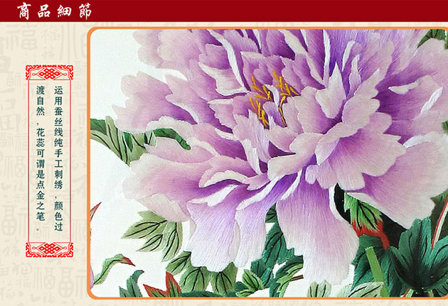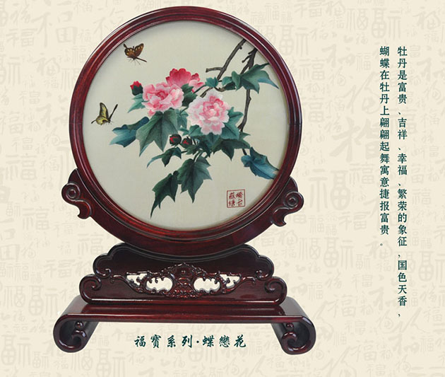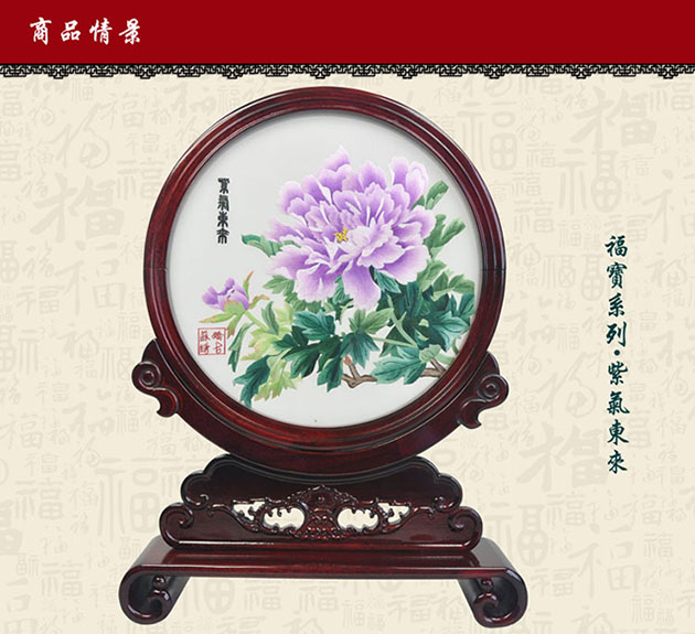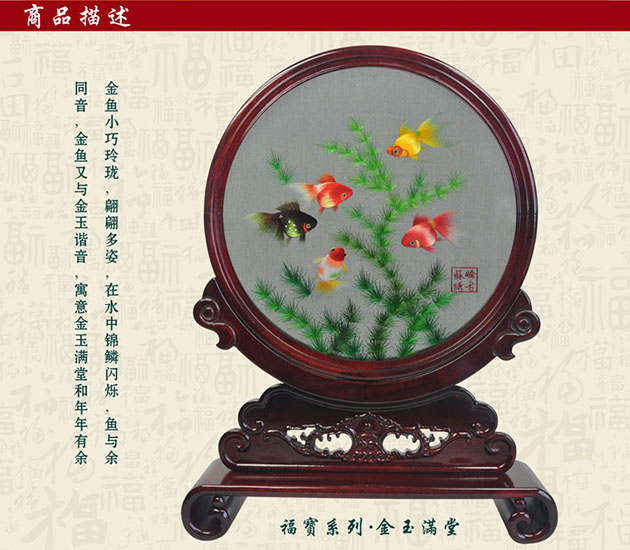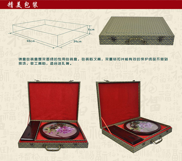 產(chǎn)品名稱:新款擺臺紫氣東來(雙面繡) (作品代碼:XS-289)產(chǎn)品規(guī)格:圖案尺寸25CM的圓外框整體尺寸寬39CM,高45CM產(chǎn)品工藝:蘇州繡娘手工刺繡。產(chǎn)品材質(zhì):真絲面料+桑蠶絲線+玻璃+紅木 產(chǎn)品包裝:錦盒禮品裝、贈嬌古蘇繡專用手提袋產(chǎn)品重量(含包裝):2KG左右嬌古出廠價(jià):3200元/件
