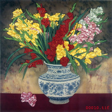 靜物花卉刺繡圖案|瓷器蘇繡圖案|古手工刺繡圖案